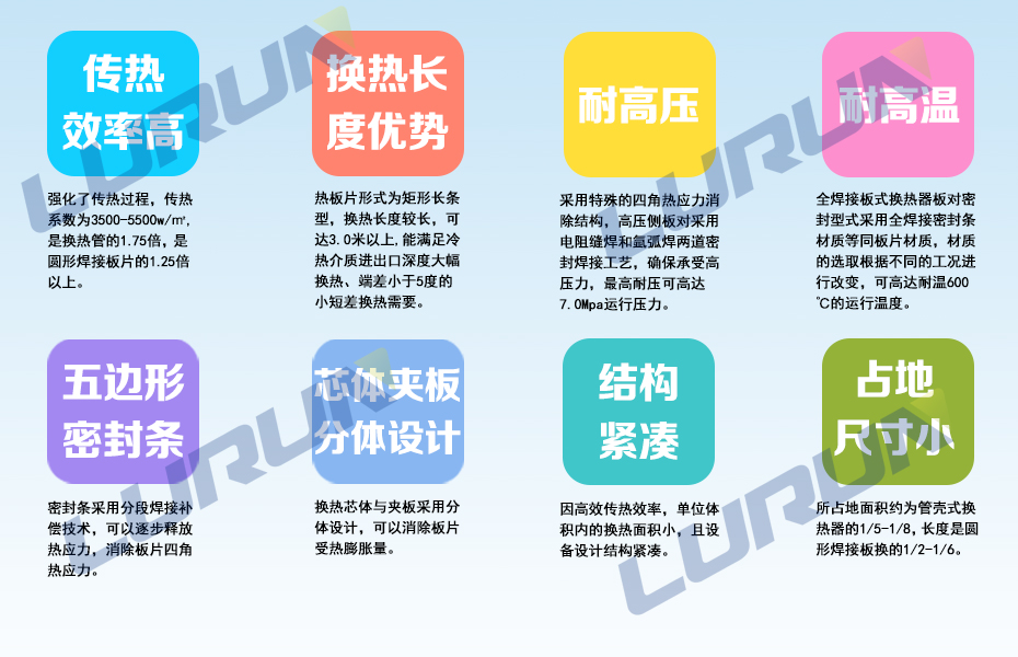 矩形高壓焊接板式換熱器是一種適用于高溫、高壓場合的新型高效換熱器。矩形高壓焊接板式換熱器結構簡單,它由換熱板束、夾板、殼體、夾緊螺柱、進出口接管和法蘭和支座組成,結合了可拆式高效和管殼式高溫高壓的優點,具有更高的耐溫和耐壓,設計溫度可達600℃,設計壓力可達6.0MPa,能夠有效的替代管殼式換熱器。主要應用于電廠熱網疏水冷卻器等。